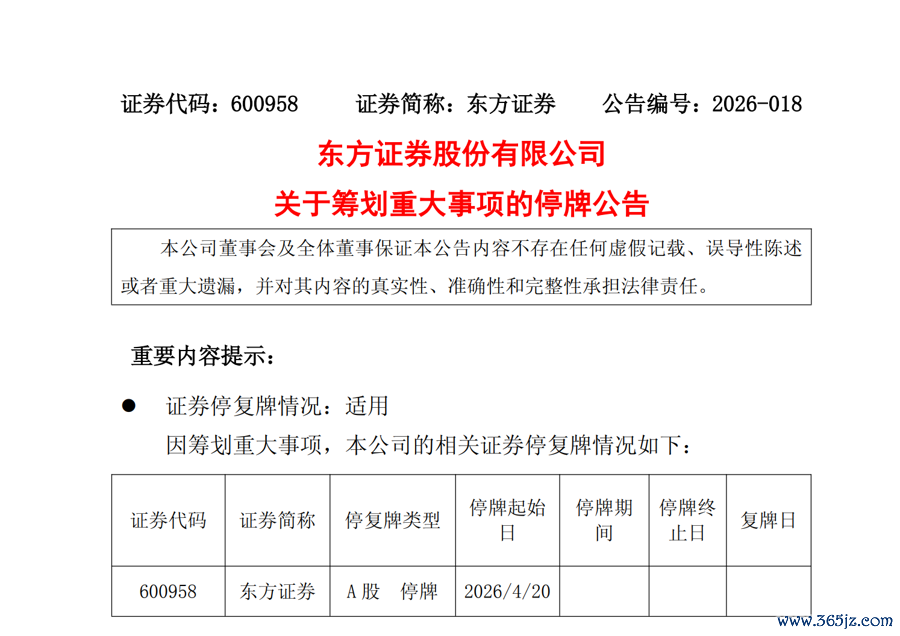 上海再现券商合并。4月19日,东方证券公告,公司正在筹划通过发行A股股份及支付现金的方式收购上海证券有限责任公司100%股权。鉴于该事项存在不确定性,为维护投资者利益,避免股价异常波动,公司A股股票将于4月20日开市起停牌,预计停牌时间不超过10个交易日。